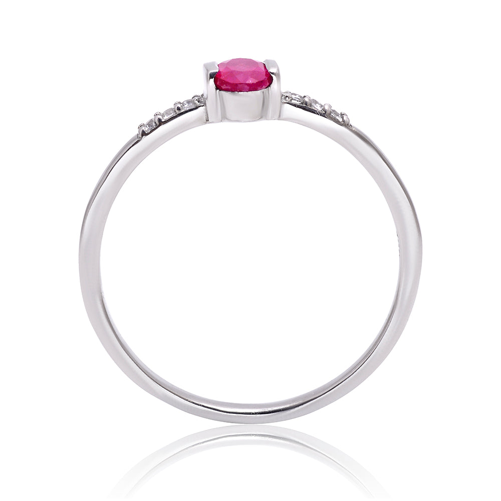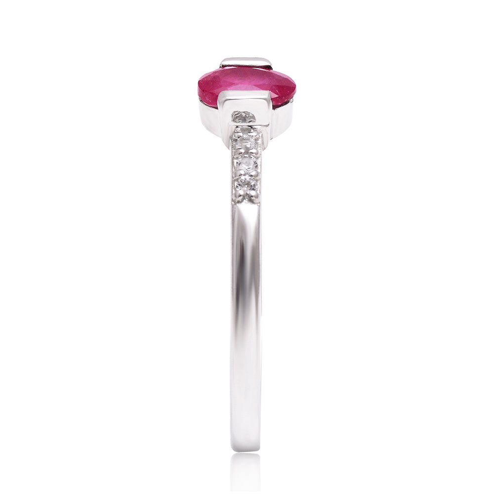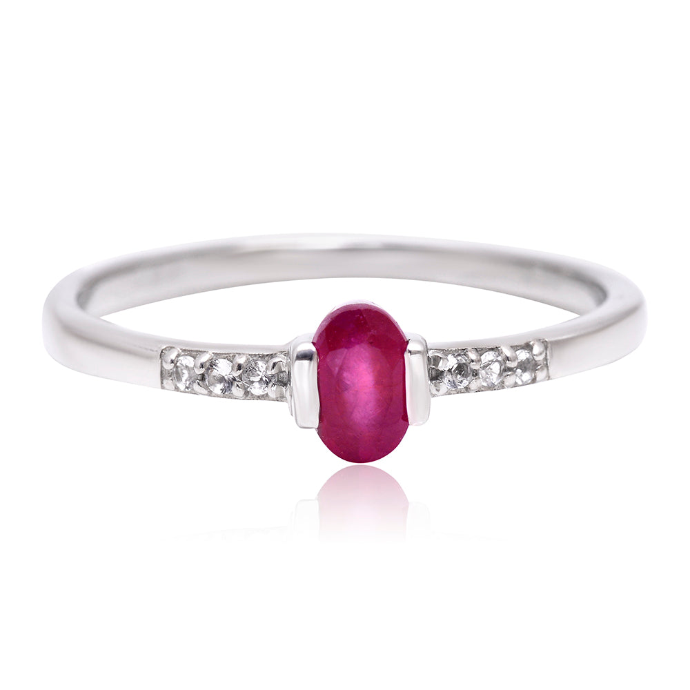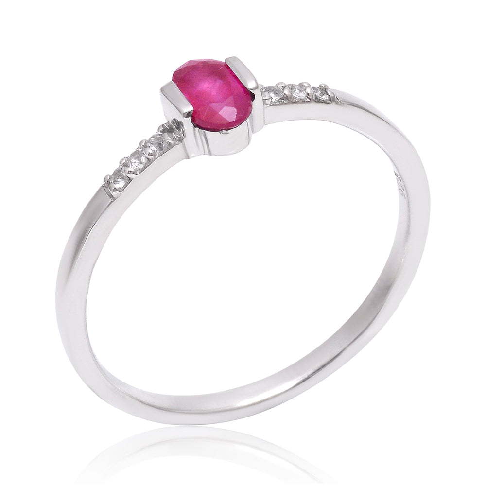 Anillo de Plata con Rubí de Madagascar y Topacio Blanco / Quilates 0.59 / Peso aprox.: 1.73 gramos Código: XMP020 Talla de la Joya: 6 mm x 4 mm