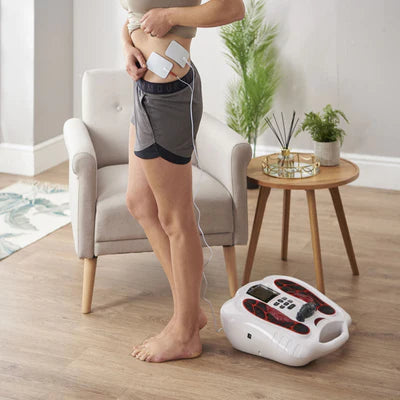 Seleccione la intensidad de potencia que desee1-99) EMS ciclo y el temporizador se pueden utilizar desde el dspositivo o con mando a distancia. 30 minutos al día es el tiempo recomendado.