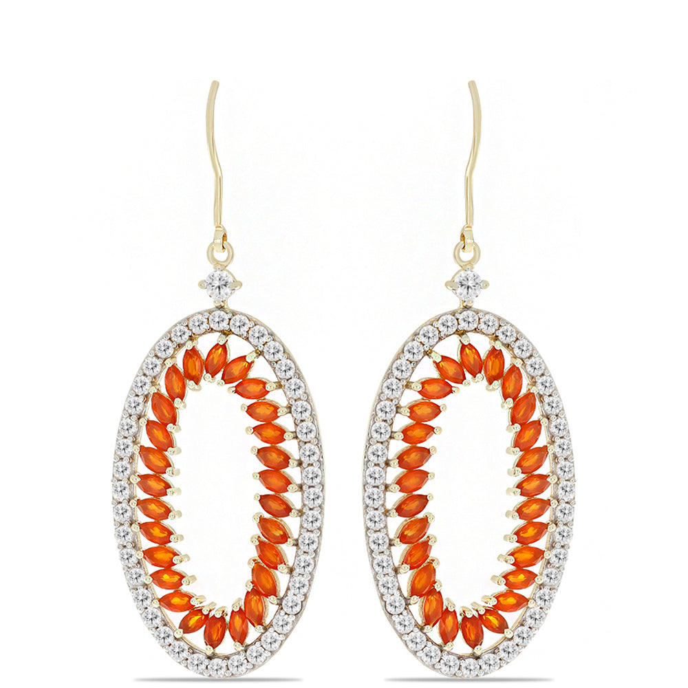 Pendientes de Plata Bañada en Oro con Cornalina y Topacio Blanco / Quilates 7.23 / Peso aprox.: 8.59 gramos Código: Y57380 Talla de la Joya: 54.30 mm x 22.70 mm Tipo de cierre: Cierre Ballestilla