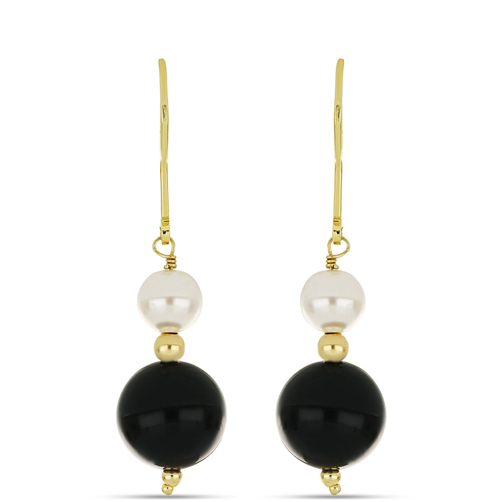 Pendientes de Plata Bañada en Oro con Ónix negro de Suwar