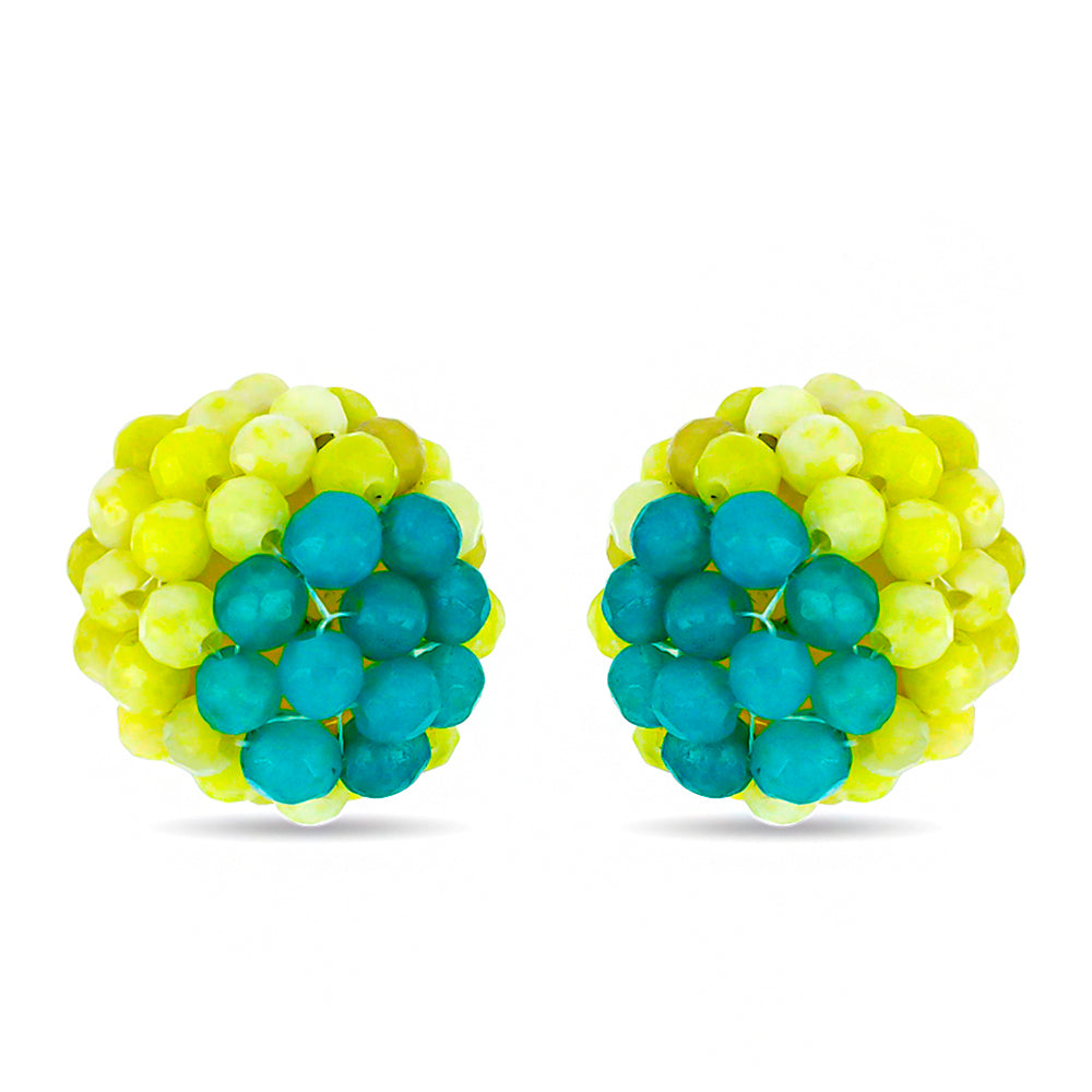 Pendientes de Plata Bañada en Oro con Serpentina Amarilla y Jade Azul